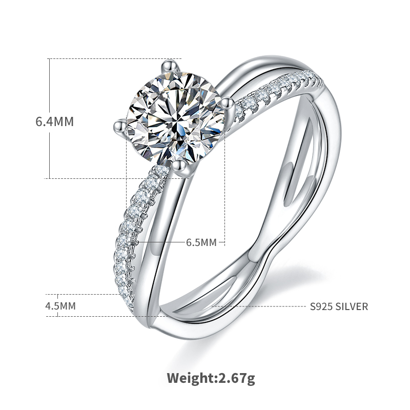 Crafted from solid 925 sterling silver, this ring is hypoallergenic and sturdy. The main stone is a high-quality lab-grown diamond, with small sparkling zircon side stones set in micro-pavé style along the dual bands. It is a reliable and cost-effective 925 sterling silver ring option for wholesale wedding rings.